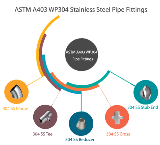 SS304 pipe fittings are refer to the butt-weld fittings made out of SS304 pipes or plates,which have the better mechanical property and rich Chrome and Molybdenum equivalents than carbon steel.The most significant attribute of SS304 pipe fittings is the anti-corrosion of high temperature creep resistance when served as pipe connectors in the pipe systems whose design temperature is over 400℃。